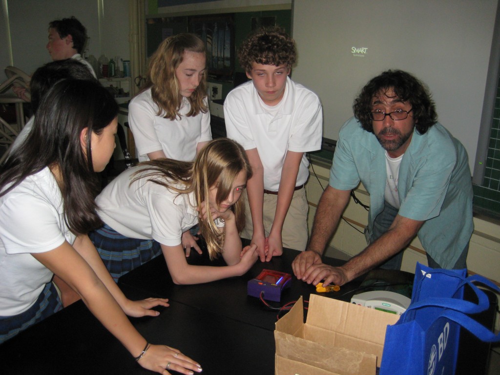 We wrapped up with some discussions about genetics while Vince prepared an even more impressive demonstration – a flash gel of their strawberry DNA isolations (as well as some human DNA controls and a ladder) that he ran and put under a blacklight. They came up in groups to see the gel and get a 5-minute lesson from Vince. Then suddenly the hour and fifteen minutes was over, and we were packing up to head home.